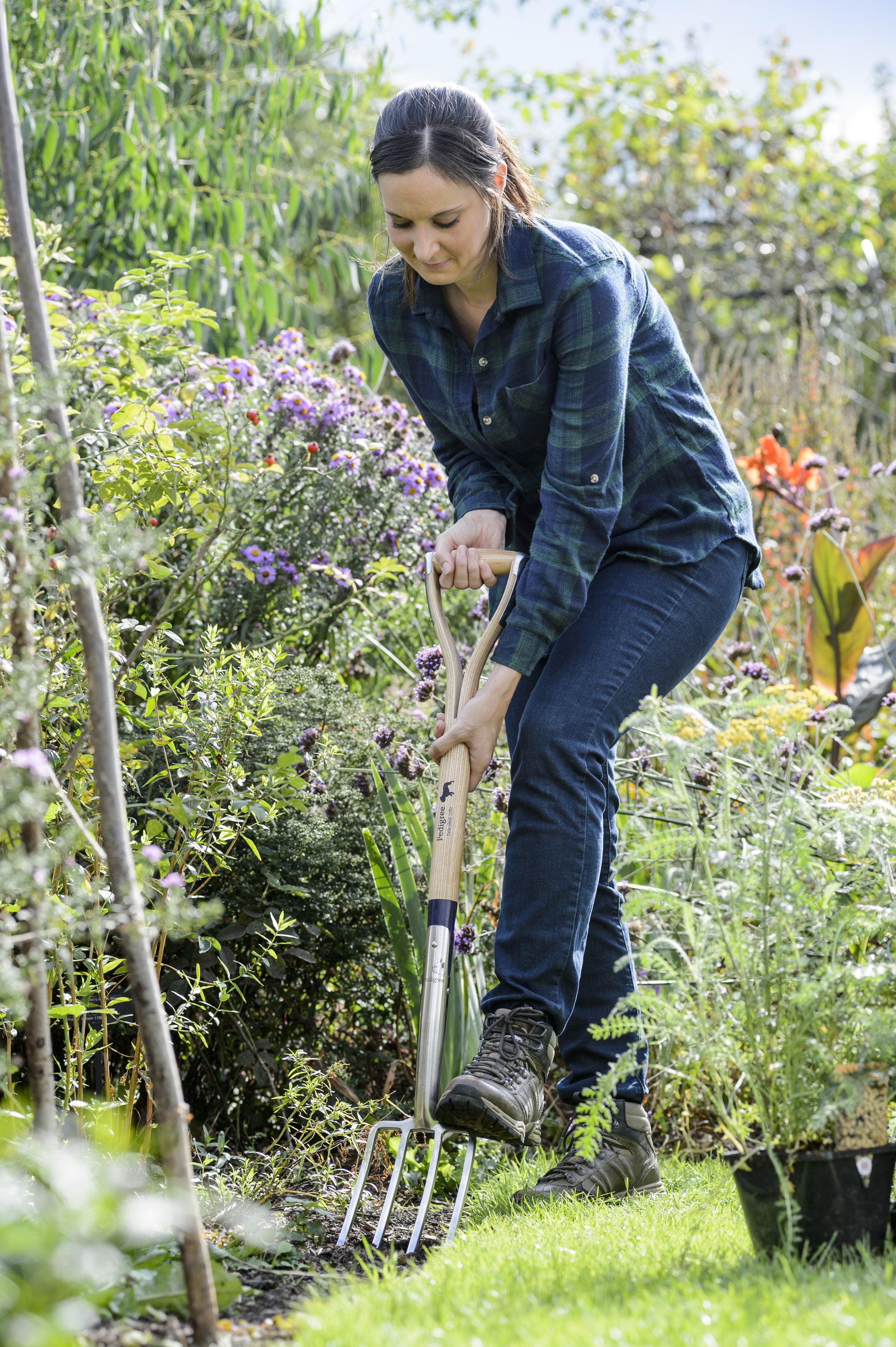 The Pedigree Border Fork is a few inches shorter than our standard fork, making it the perfect tool for petite gardeners or tight spaces. Also great for removing weeds between shrubs and established plants, or used to break down large clumps of soil. The Ash YD handle provides a comfortable grip. Approx. 37"